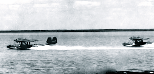 Right: Dornier Flying Boats landing on Roebuck bay, Feb 1942.